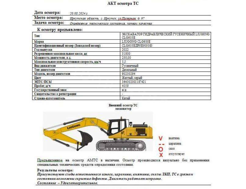 АО «Сбербанк Лизинг» Лот №3746. ЭКСКАВАТОР ГИДРАВЛИЧЕСКИЙ ГУСЕНИЧНЫЙ LIUGONG CLG933E, 2022
