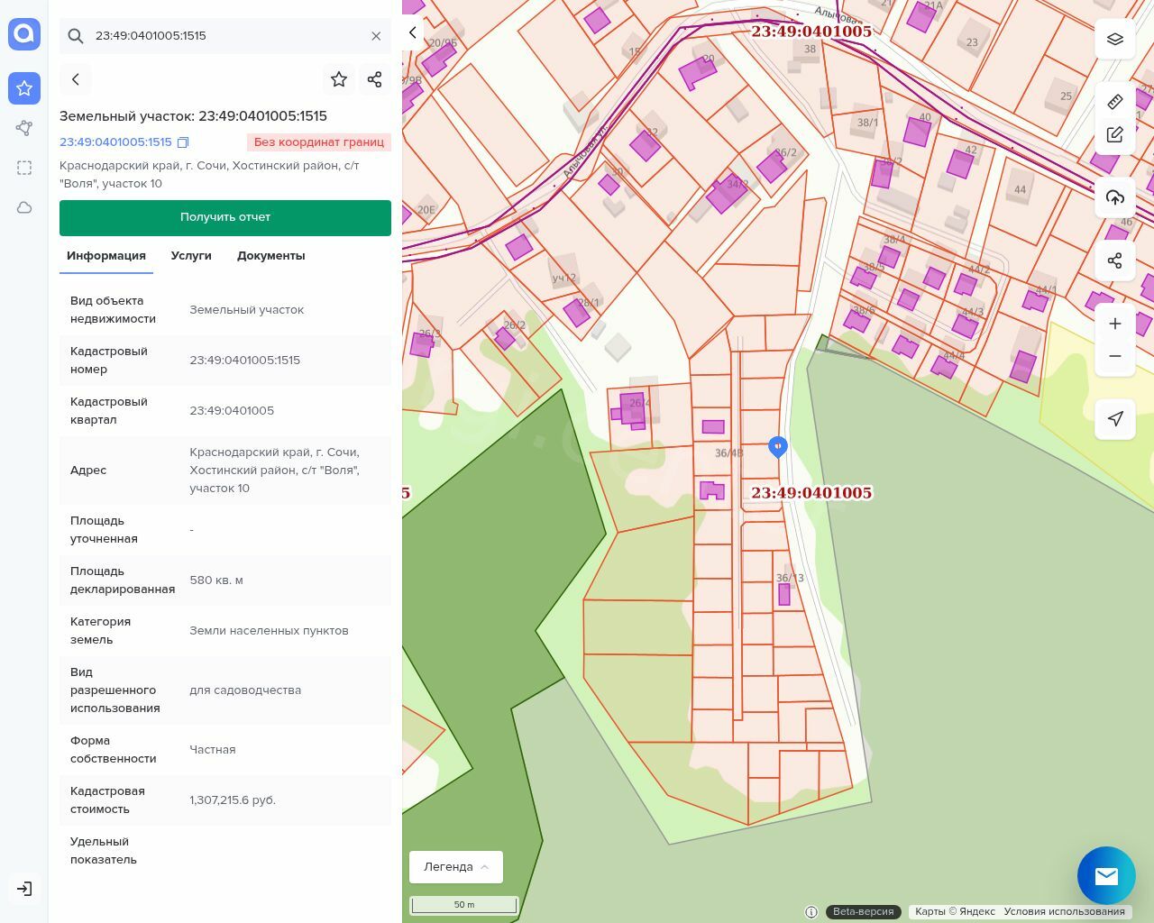 Лот №1. Земельный участок (КН: 23:49:0401005:1515, для садоводчества, площадь: 580 кв.м.) Требуется межевание (за счёт покупателя)