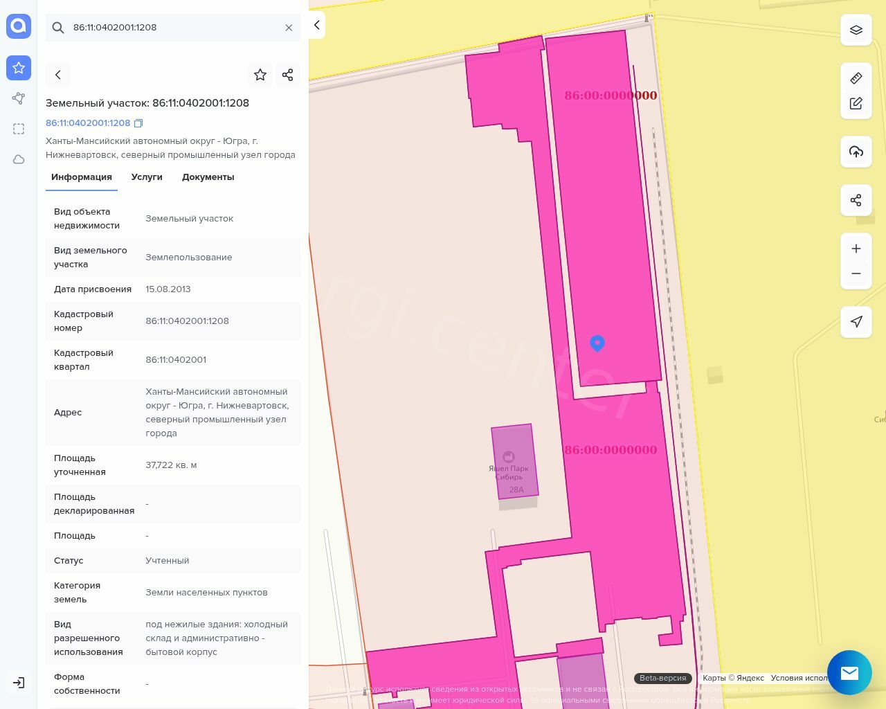 Право аренды на земельный участок, кадастровый номер: 86:11:0402001:1208, категория земель: земли населенных пунктов, площадью 37 722 кв. м., разрешенное использование: под нежилые здания: холодный склад и АБК Адрес: ХМАО-Югра, г. Нижневартовск, северный промышленный узел города;