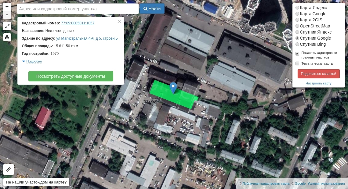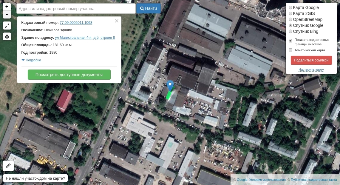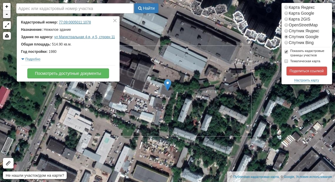 Здание, назначение: нежилое, этажность: 1, общая площадь, 514,9 кв. м, кадастровый № 77:09:0005011:1078, Адрес: Российская Федерация, г. Москва, вн.тер.г. муниципальный округ Хорошевский, ул. 4-я Магистральная, д. 5, стр. 11;
