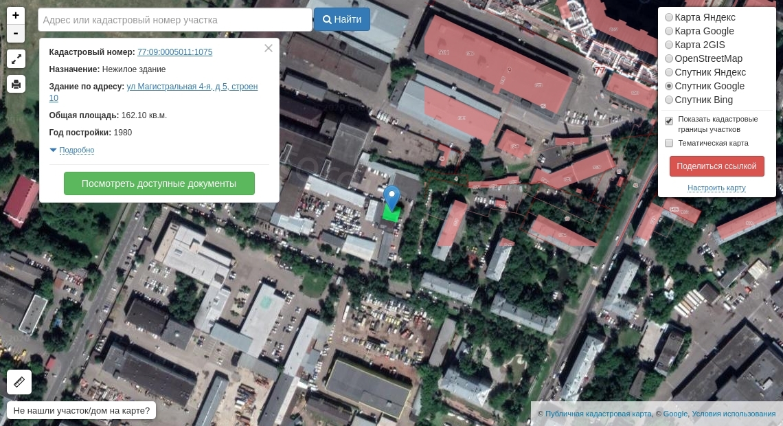 Здание, назначение: нежилое, этажность: 1, общая площадь 162,1 кв. м, кадастровый № 77:09:0005011:1075, Адрес: Российская Федерация, г. Москва, вн.тер.г. муниципальный округ Хорошевский, ул. 4-я Магистральная, д. 5, стр. 10;