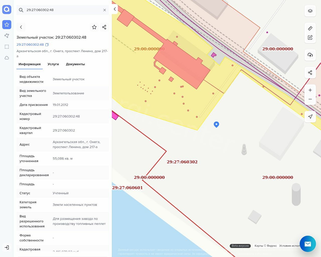 Производственная котельная, с попутной выработкой электрической энергии в рамках реконструкции имущественного комплекса Онежского гидролизного завода под размещение завода по производству топливных пеллет, назначение: сооружения топливно-энергетического, металлургического, химического или нефтехимического производства, пл. застройки 2210,1 кв.м, в составе: Котельная №106, инв. №00000223 Галерея второго подъема №106/4, инв. №00000220 Галерея первого подъема №106/3, инв. №00000221 Приемное устройство с навесом (крытый склад угля) №106/2, инв. №00000224 Дробильное устройство №106/1 Дымовая труба/Размер D 2 200хН 45000/, кад. № 29:27:060302:142