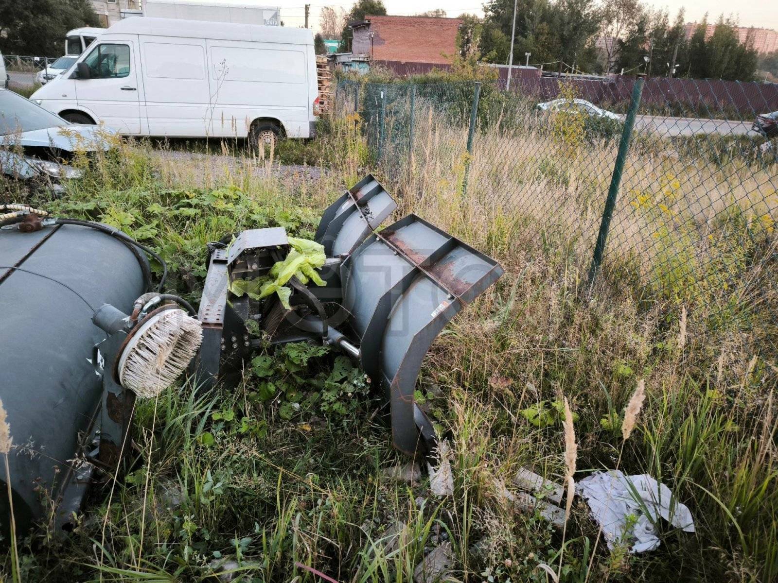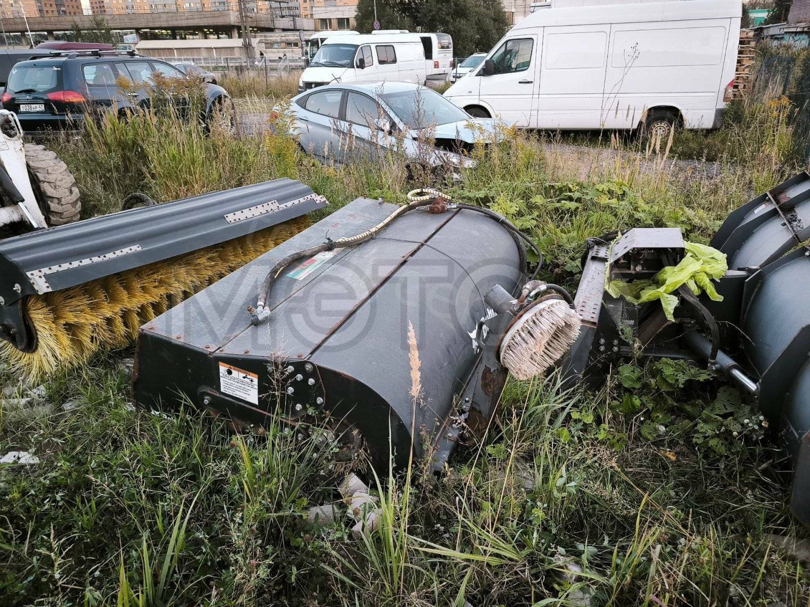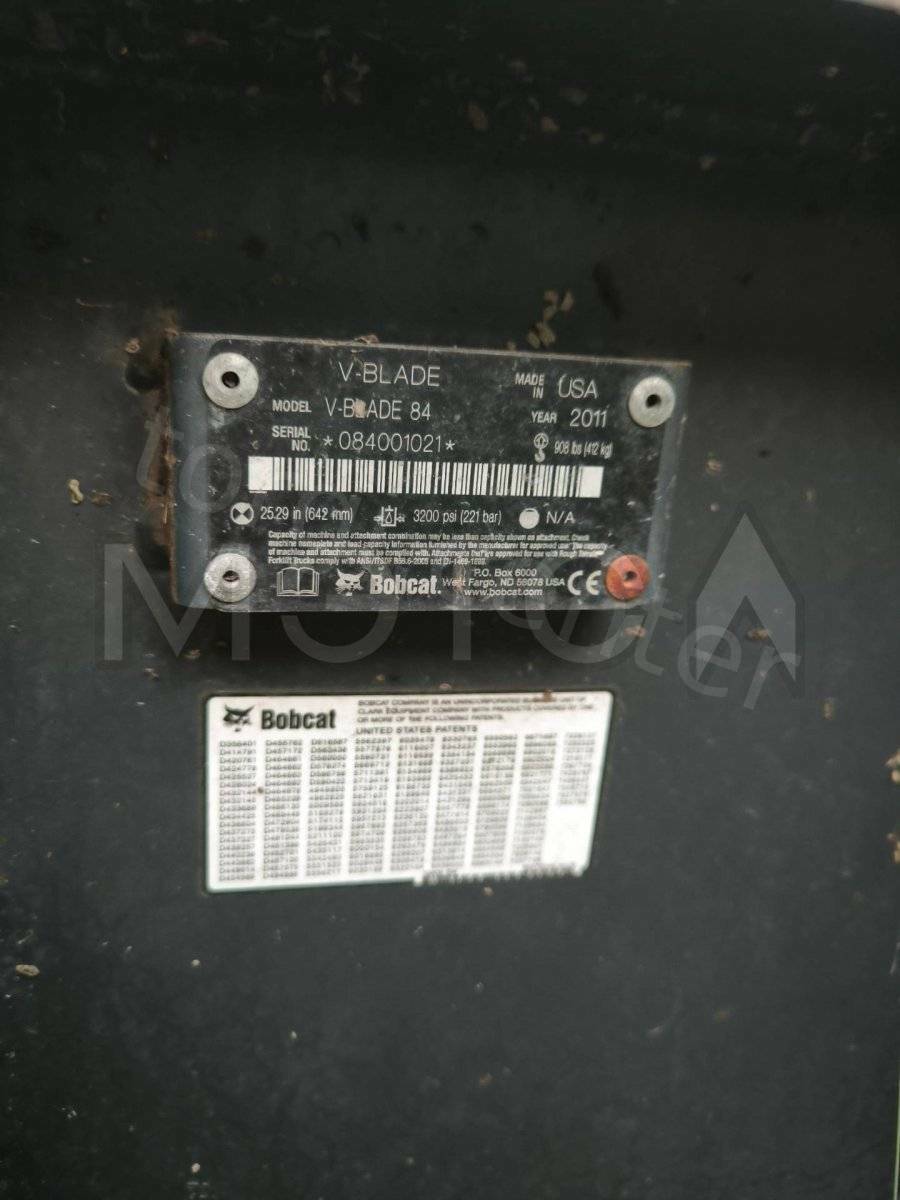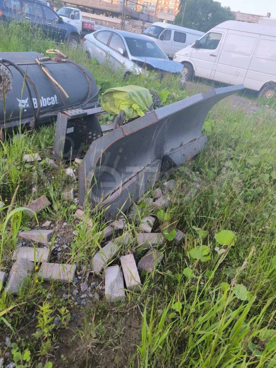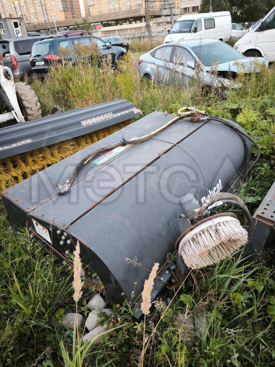 Навесное оборудование: щетка с бункером Sweeper Bucket 84 (серийный №: А00А01354), снегоуборочный отвал V-Blade 84 (серийный №: 084001021), угловая метла Angle Broom 84 (серийный №: 231416282)