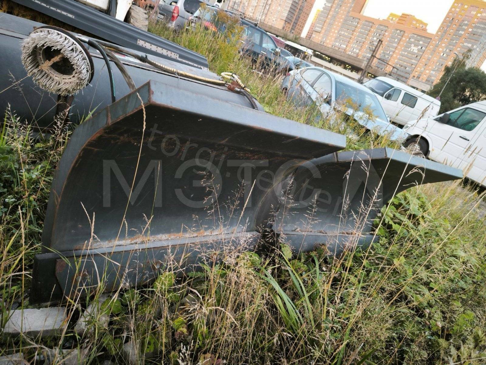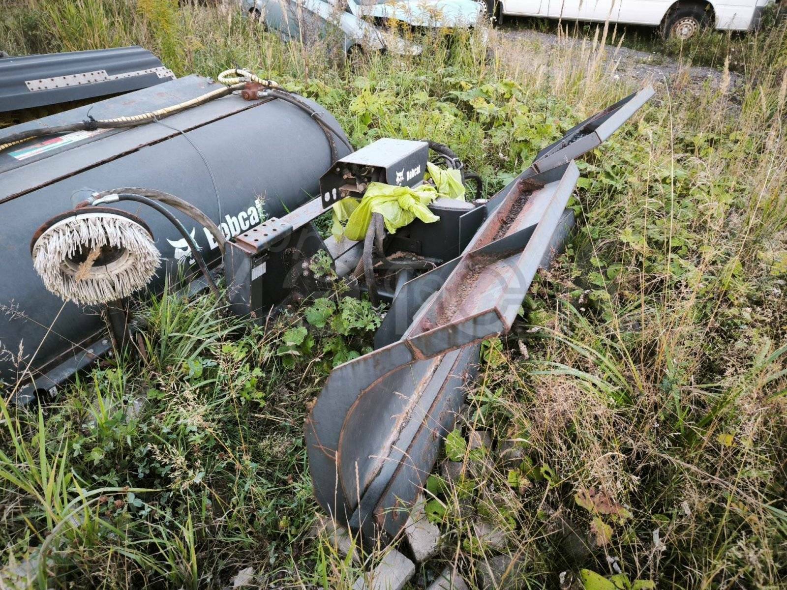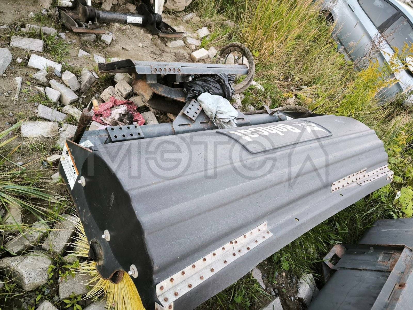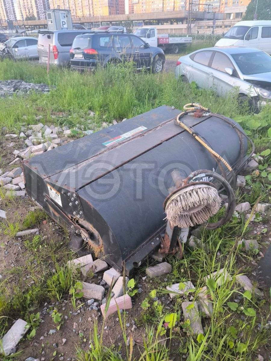 Навесное оборудование: щетка с бункером Sweeper Bucket 84 (серийный №: А00А01354), снегоуборочный отвал V-Blade 84 (серийный №: 084001021), угловая метла Angle Broom 84 (серийный №: 231416282)