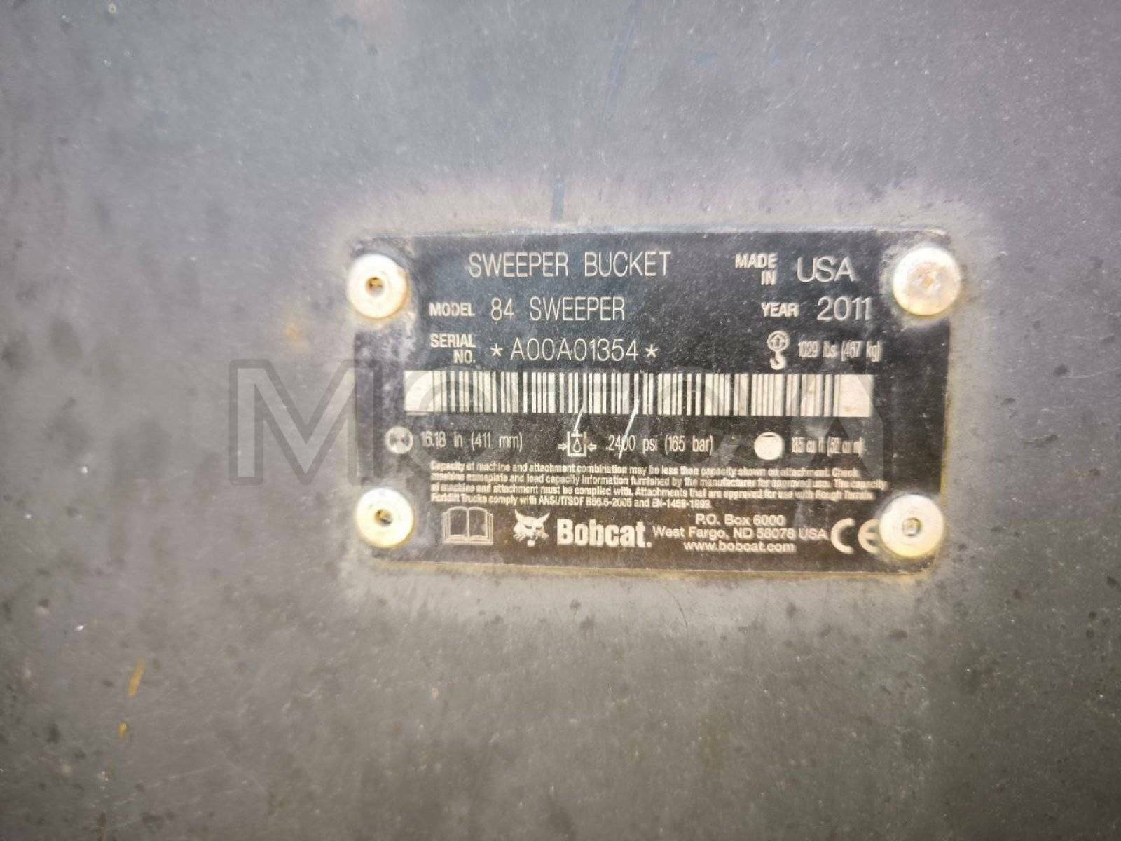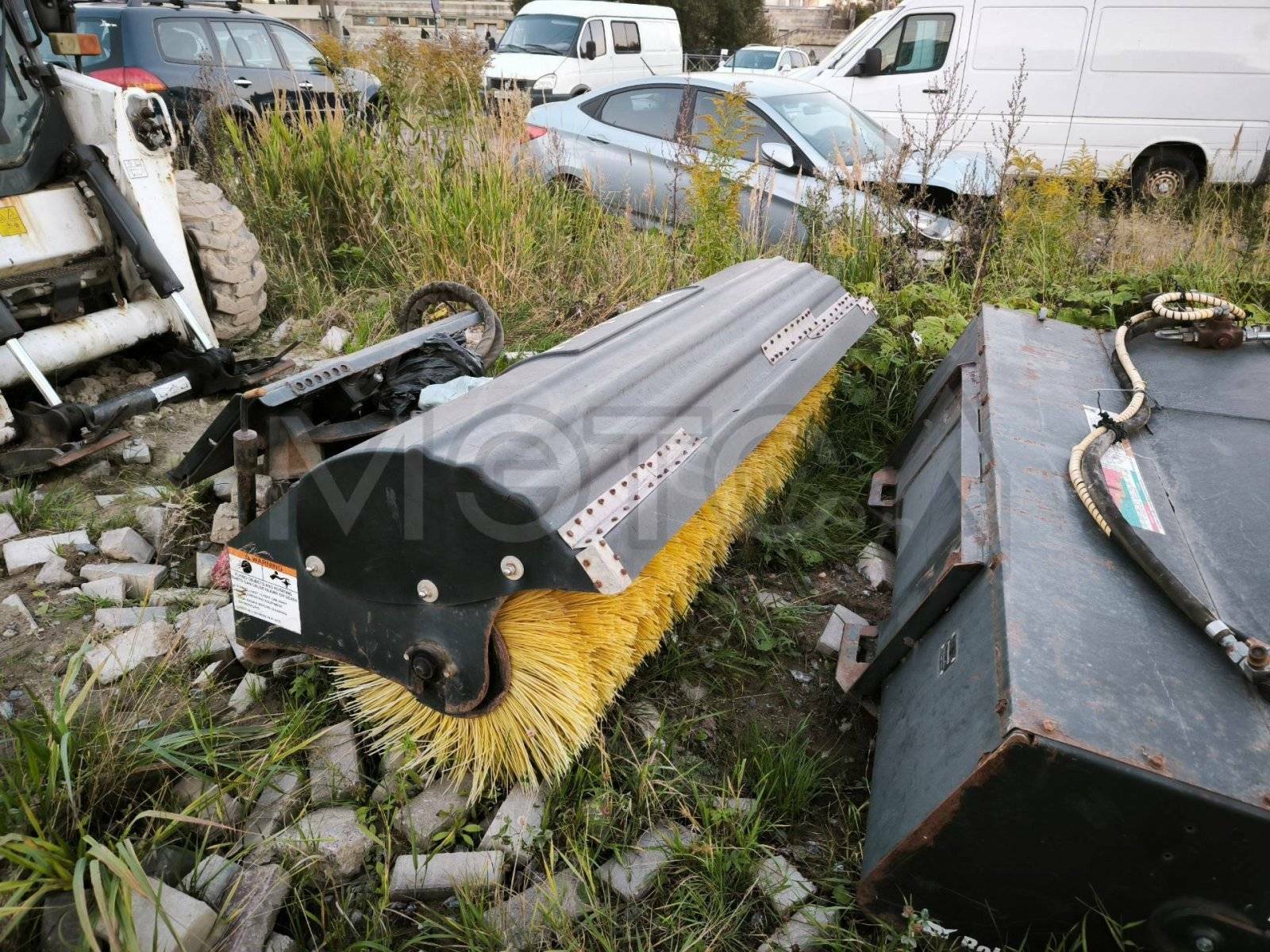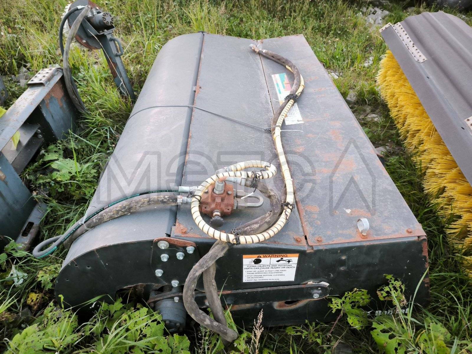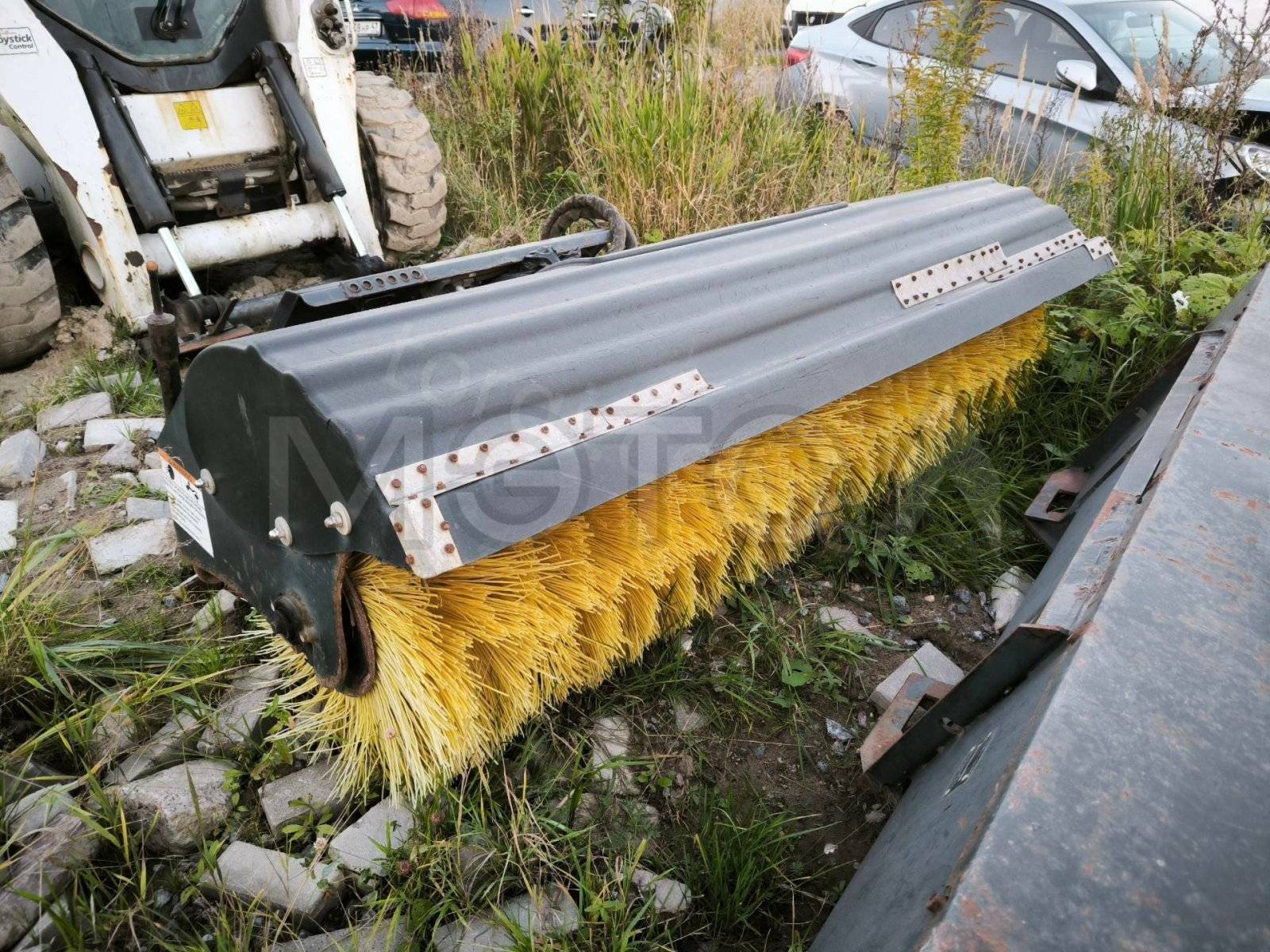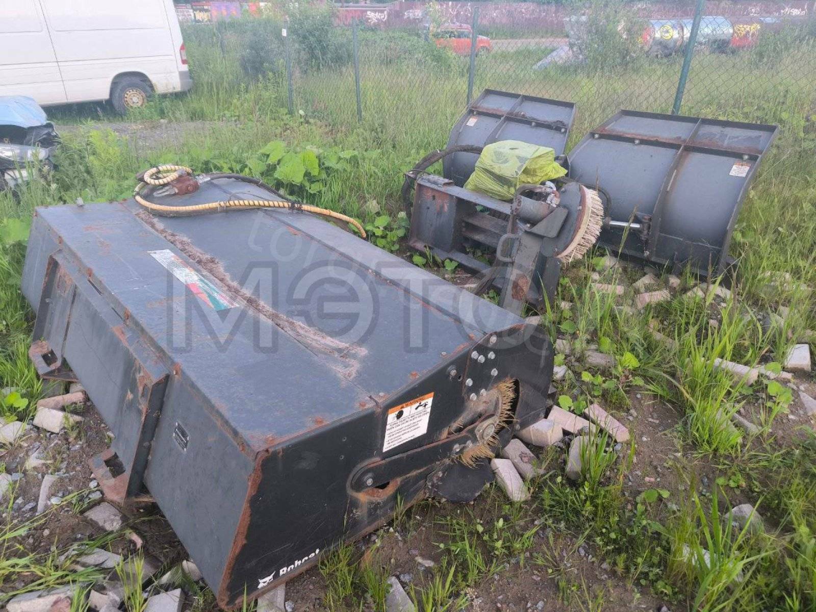 Навесное оборудование: щетка с бункером Sweeper Bucket 84 (серийный №: А00А01354), снегоуборочный отвал V-Blade 84 (серийный №: 084001021), угловая метла Angle Broom 84 (серийный №: 231416282)