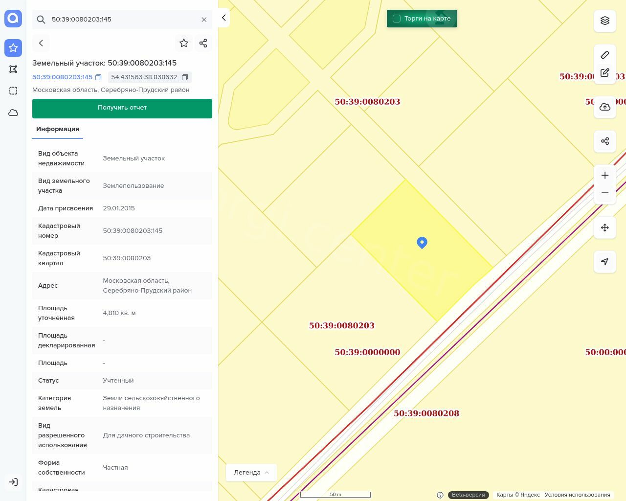Земельный участок с кадастровым номером 50:39:0080203:145, пл. 4 810,00 кв.м.