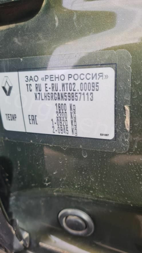 Транспортное средство марка, модель ТС: Renault Duster Наименование (тип ТС): Легковой универсал Год выпуска: 2018. Категория: В. Идентификационный номер: X7LHSRGAN59857113 Номер двигателя: Р030453 Номер кузова (кабины, прицепа): X7LHSRGAN59857113. Цвет кузова (кабины, прицепа): зеленый Рабочий объем двигателя, см. куб.: 1598. Мощность двигателя, л.с.: 113,9. Тип двигателя: бензиновый Тип привода: Полный Гос. рег. номер: Т569НХ124 .