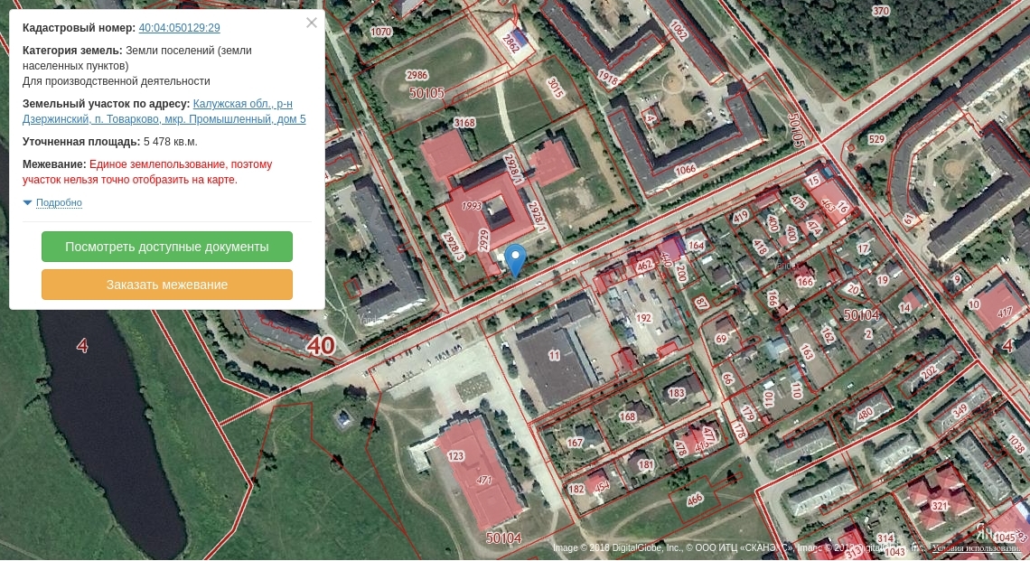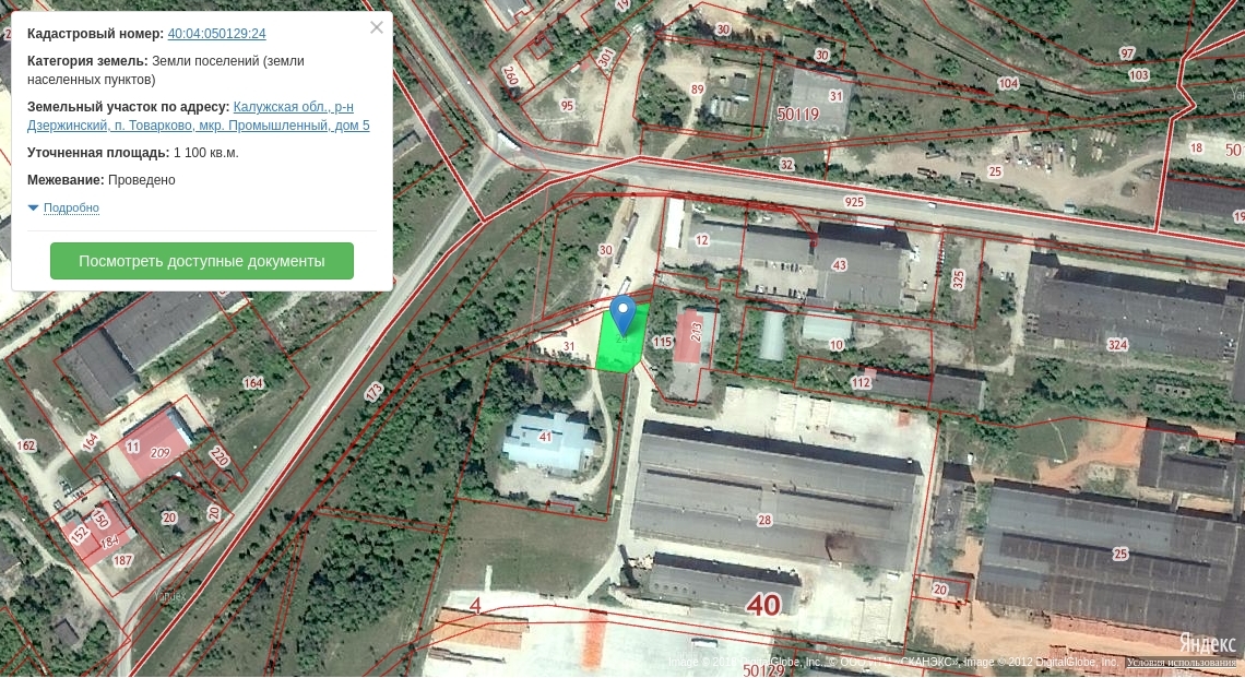 Адрес: Калужская обл., Дзержинский р-н, пос. Товарково, Промышленный мкр., д.5, кад. №40:04:050129:0024